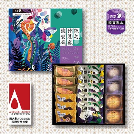 內容物:芋頭酥 X 2入+伴口鳳黃餅 X 2入+奶油小酥餅 X 2入+芋頭小酥餅 X 3入+金愛餅(土鳳梨) X 3入+鳳梨酥 X 3入