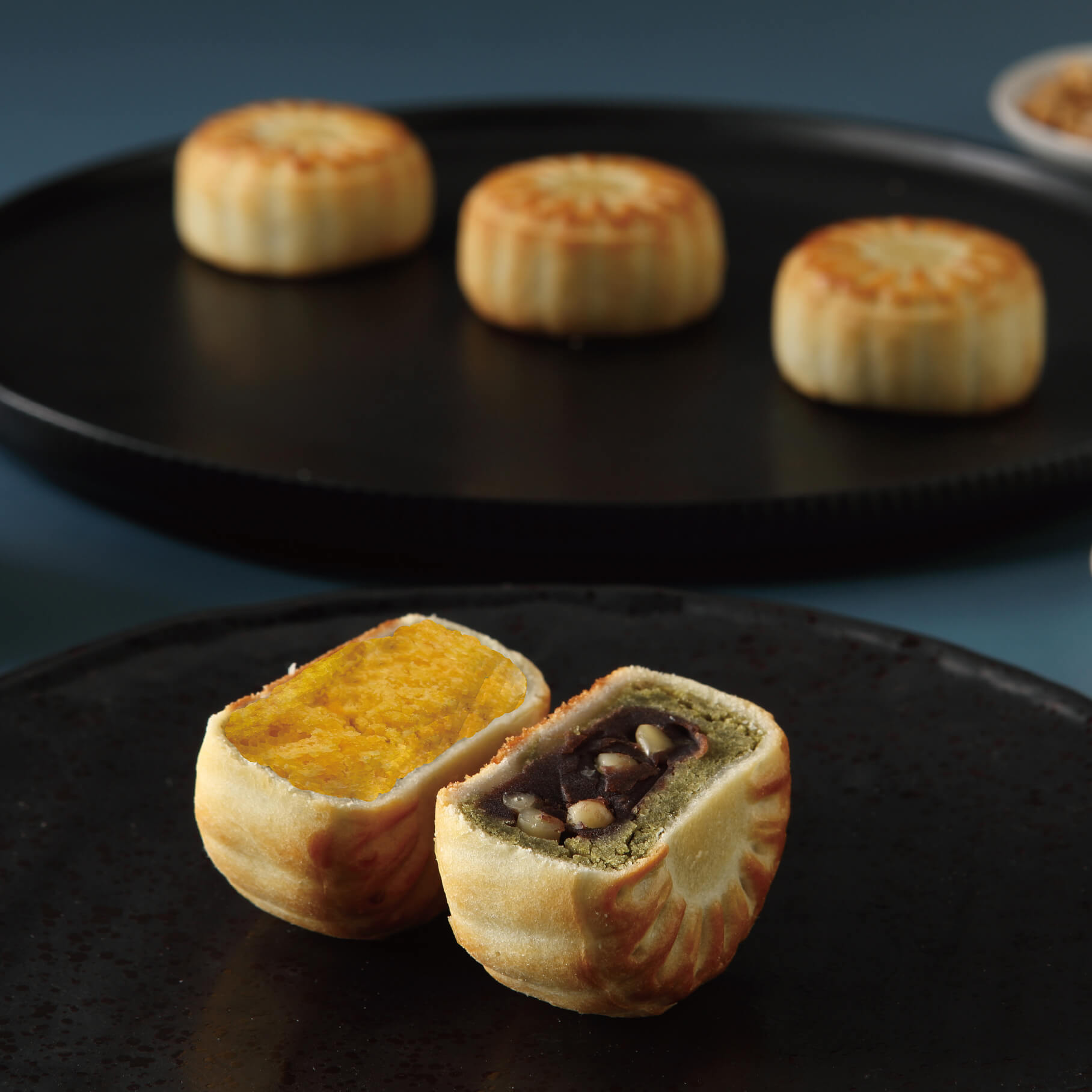 百年書院鐘聲悠揚,它曾伴讀書聲響起,也見證時代更迭。我們將銅鐘的祥瑞紋飾化為餅模,製成具有文化意涵的外形,內餡則選用南投在地綠豆研磨成細緻綠豆沙,搭配金黃鹹香蛋黃,鹹甜交融,用味道延續書院的靈魂。